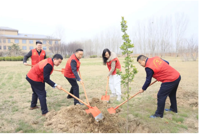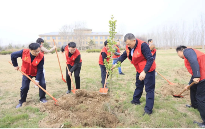 植樹現(xiàn)場,大家分工明確,配合默契,有的揮锨挖坑,有的扶苗培土,有的提桶澆水,每道環(huán)節(jié)銜接有序、配合默契,每道工序仔細認真、一絲不茍,呈現(xiàn)出一派忙碌有序、熱火朝天的勞動景象,洋溢著團結(jié)協(xié)作、奮發(fā)向上的良好氛圍。經(jīng)過緊張的勞作,一排排新種植的樹苗迎風而立,盡顯春日勃勃生機、萬物競發(fā)的姿態(tài)。